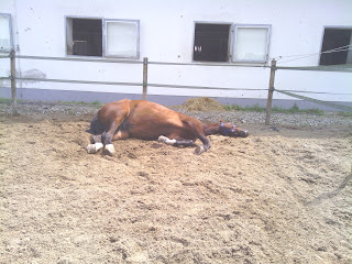 Mein Pferd hat mal wieder für volle Zuschauerränge am Paddock gesorgt. Am Mittag hat er sich da einfach mal schlafen gelegt und sich die Sonne auf den Pelz scheinen lassen. Trotz ständigem Durchgangsverkehr, der ihn nicht weiter gestört hat.