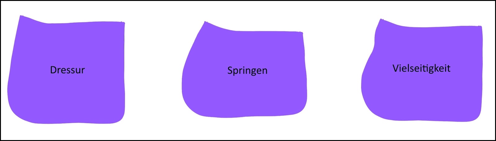 Je nach Satteltyp gibt es 3 Formen, die man unterscheiden kann: Springen, Vielseitigkeit und Dressur.