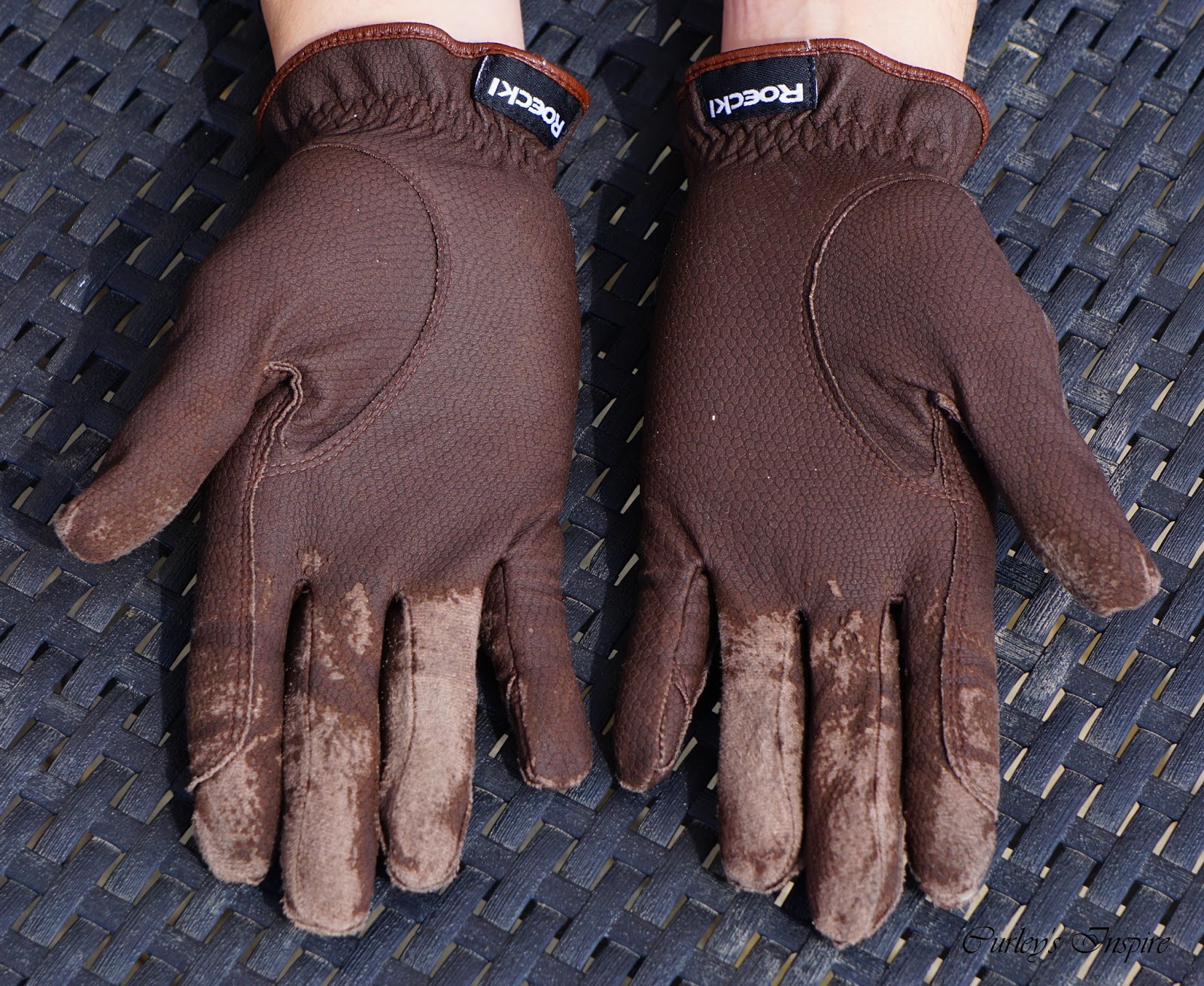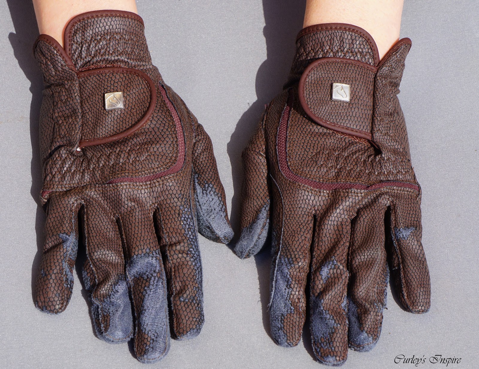 Und so sehen diese Reithandschuhe nach über einem Jahr Benutzung aus: