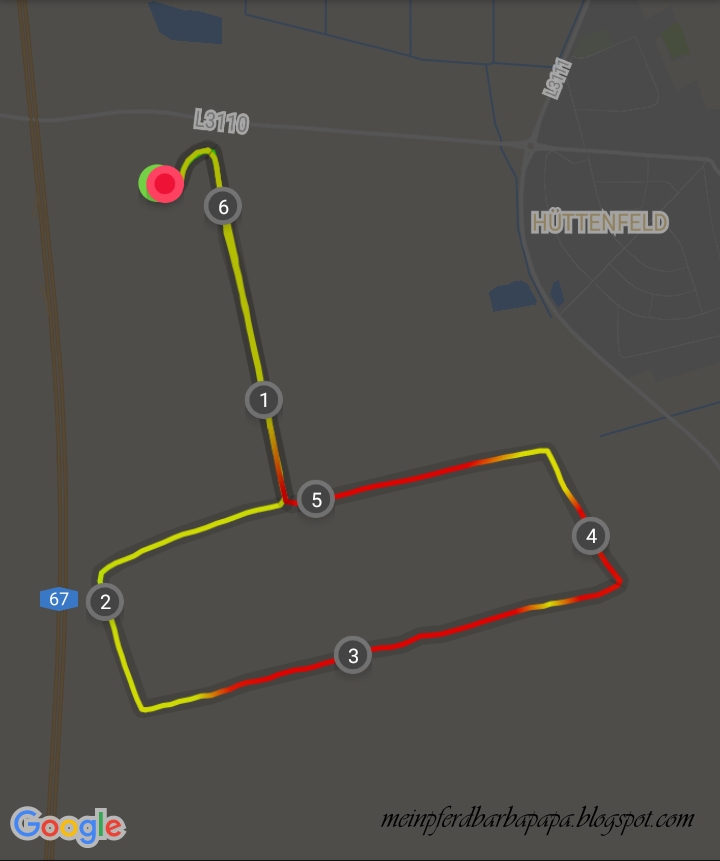 Am Ende (zw. Punkt 4 und 5 auf der Skizze) galoppierten wir sogar ein kleines Stück 🙂