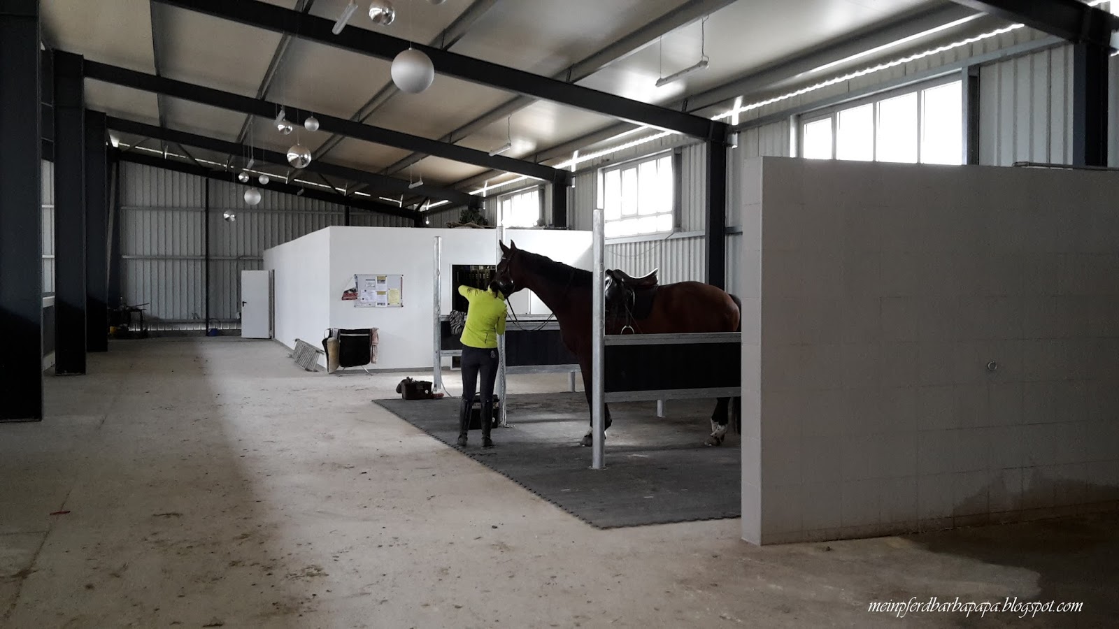 Da die Pferde an diesem Tag nicht so lange draußen waren, wollte ich Barba dennoch die Möglichkeit geben, sich die Beine zu vertreten und ein bisschen an unseren Übungen weiterzuarbeiten.