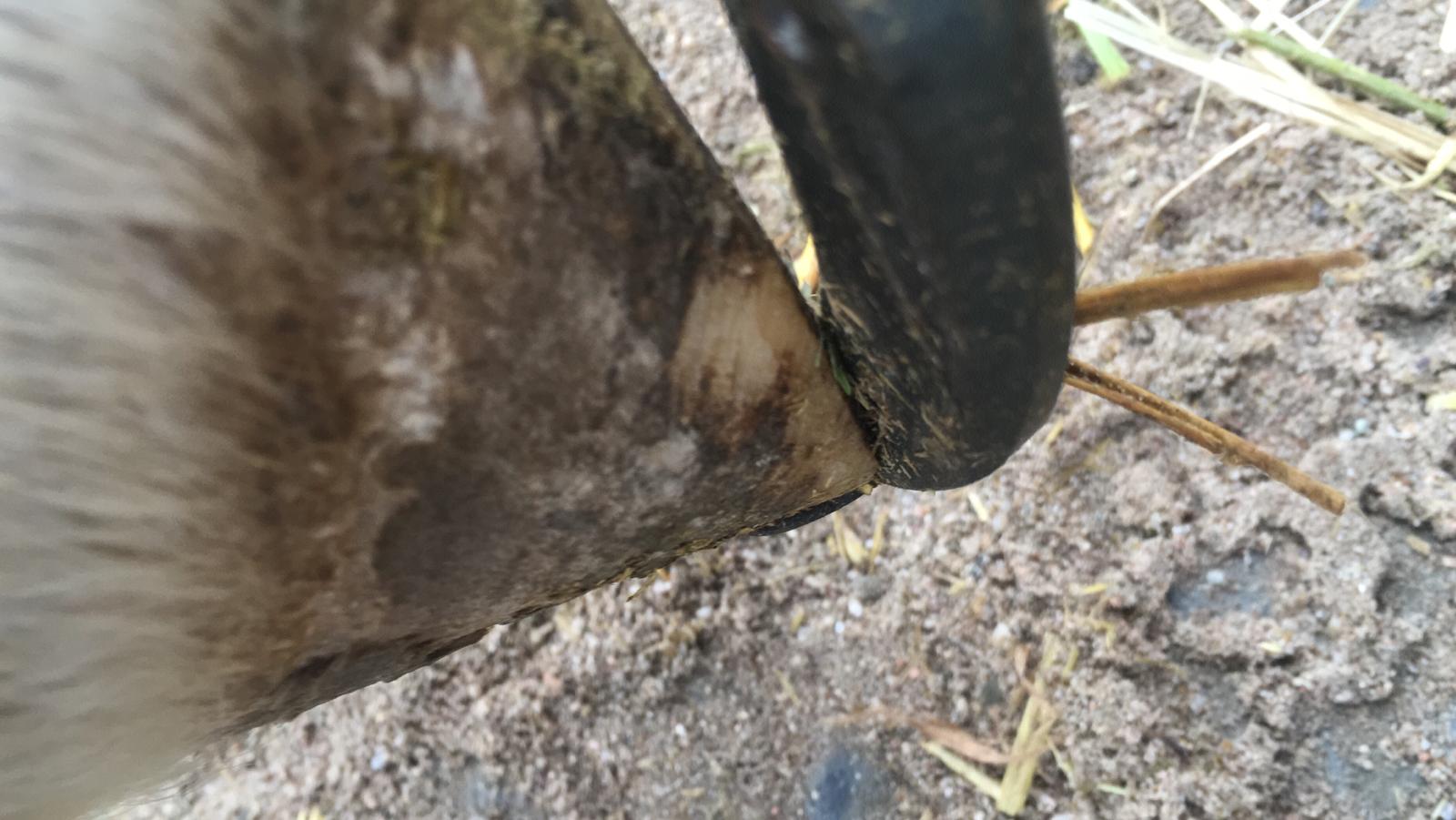 Die Kappe an der Seite vom Eisen, bohrte sich bei jedem Tritt in den Huf. Zusätzlich auch noch ein Nagel.