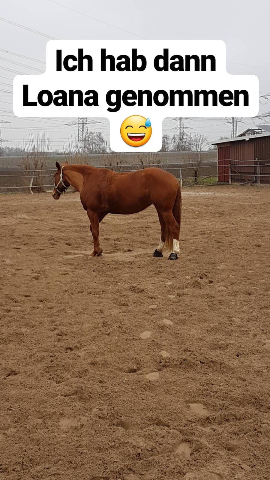 In der kleinen Halle gestaltete sich das wirklich schwer. Der Wind bließ durch die Ritzen der Hallenwände und Loana sprang mir vor Angst in die Longe.