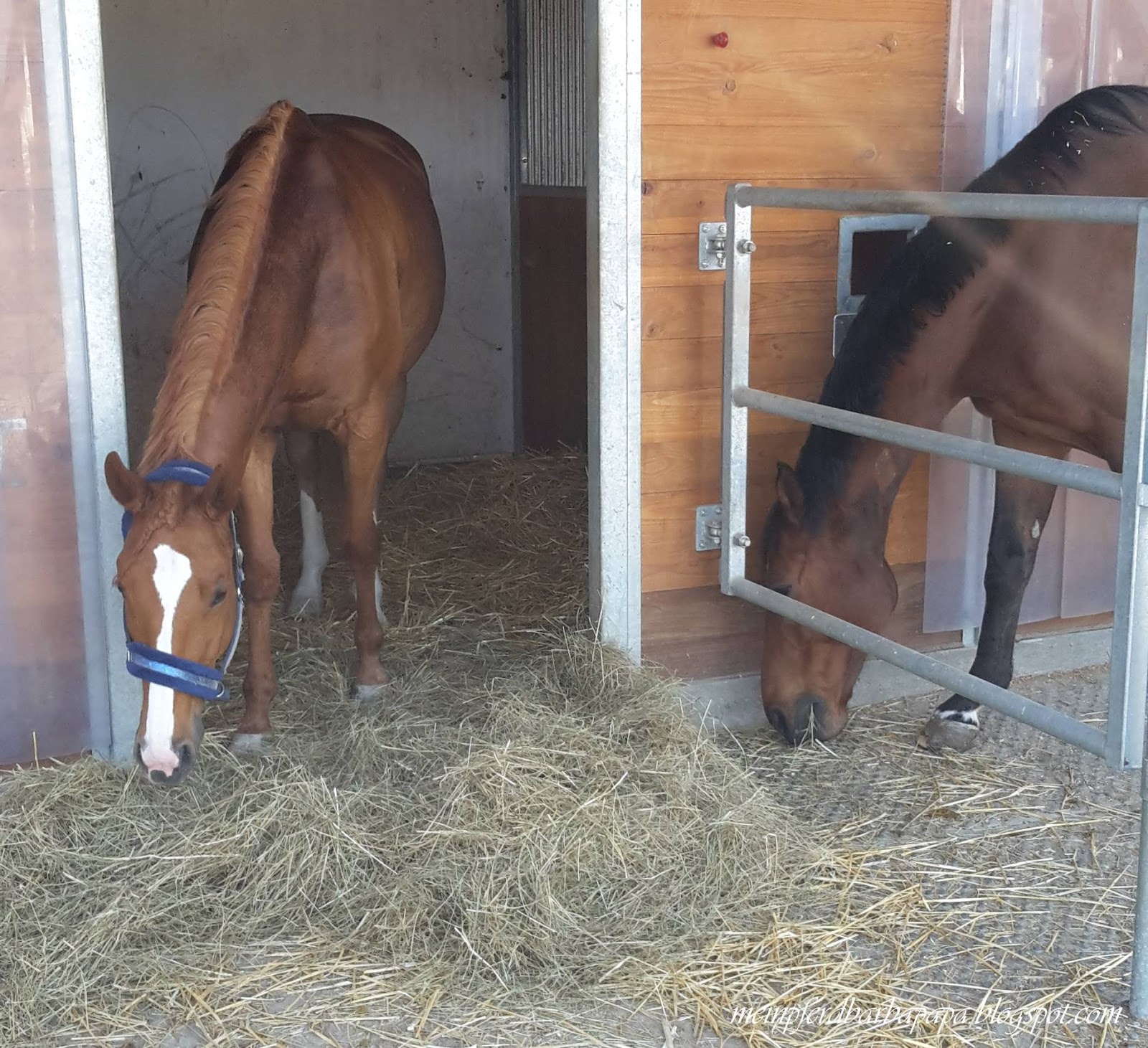 Loana war ja schon immer der Typ Pferd, der gerne Outdoor isst. Seit dem Barbapapa aber von der Klinik zurück ist, schaufelt sie wirklich das gesamte Heu und Stroh nach draußen, damit sie mit Barbapapa zusammen fressen kann. Der freut sich natürlich über seine Extraportion. Besonders aber über das Stroh, das er ja zur Zeit noch nicht fressen soll.