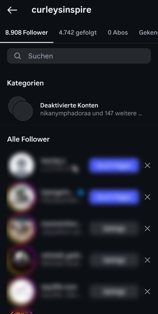 Schaue dir vorher die Follower an, damit du nicht aus Versehen aktive Follower löschst.